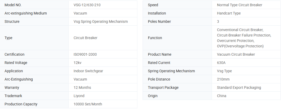 Вакуумний вимикач VSG - це новий приміщення в приміщенні. В основному він використовується для трифазної системи живлення змінного струму з номінальною напругою 12 кВ та номінальною частотою 50-60 Гц. Він має переваги компактної структури, високої надійності, невеликої вібрації експлуатації та легкого обслуговування. Його можна широко використовувати в електростанціях, сталевих млинах, металургії, нафтохімічній, транспорті, будівлях та інших промислових та гірничих підприємств. Як розподільний пристрій для захисту високольтажних двигунів, трансформаторів, несправностей ліній та інших навантажень.