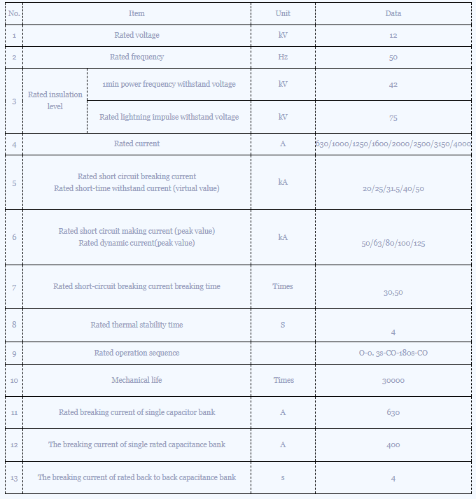 1. VCB повний тип, основні технічні характеристики, фазова відстань та кількість
