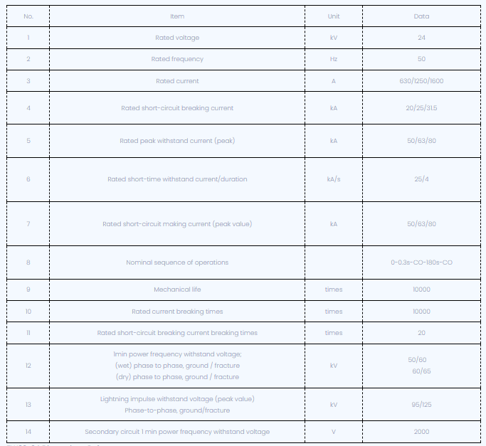 Переривник для вимикача відповідає технічним стандартам, таким як GB1984-2003 Високий вимикач змінного струму високої напруги, DL T402-2007 Технічні умови для замовлення вимикача змінного струму високої напруги та технічних умов DL / T403-2000 для замовлення вимикача 12 кВ ~ 40,5 кВ.