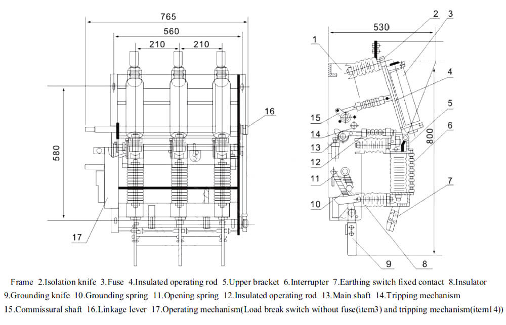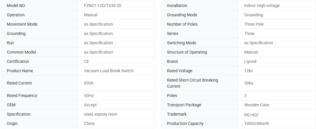 FZN21-12D/T630-20, FZN21-12DR/T125-31.5 type high-voltage vacuum load break switch and fuse switch are operating in three-phase AC electrical 12kV, 50Hz power distribution system, with a compact, small size, light weight, long service life, high making and breaking ability, safe and reliable, and if load switch cooperated with fuse namely fuse switch can replace those запобіжники з більшою вартістю, легкою та зручною експлуатацією та обслуговуванням