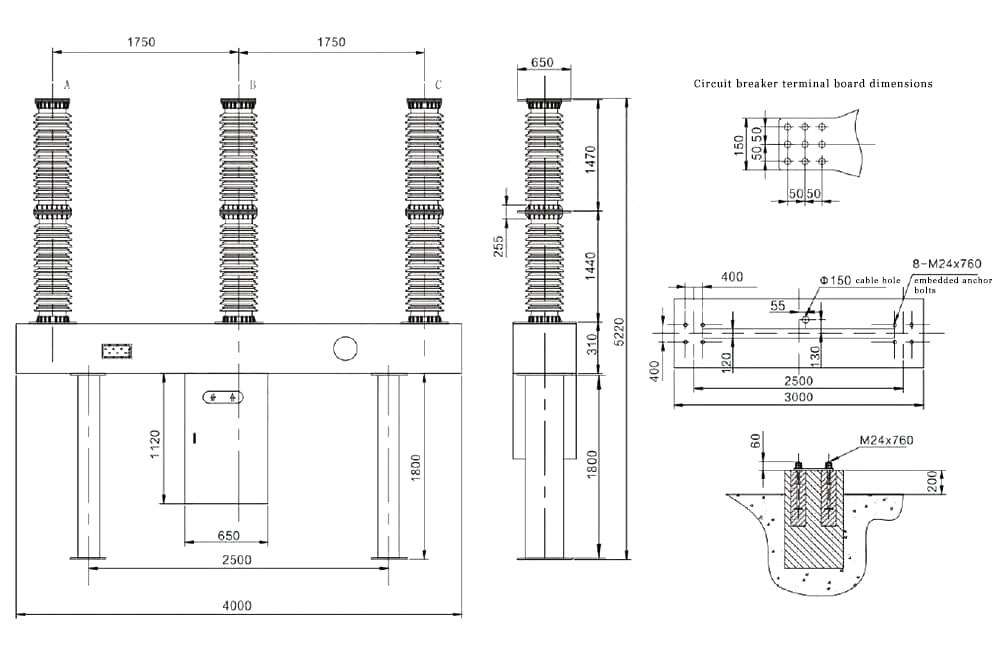 Переривник для вимикача приймає трифазну порцелянову колонку з однопровною структурою. Три фази оснащені механізмом експлуатації пружини, який центрально розташований та трифазний, тому зовнішній вигляд є новим і вишуканим. Перекарок використовує газ SF6 як ізоляцію та гасіння дуги. Під час експлуатації підключений триполюсний газ SF6 вимикача, а для контролю його тиску та щільності використовується реле щільності типу вказівника. Завдяки принципу гасіння дуги самоенергетики та оптимізованої конструкції в системі руху вимикача, механічна ефективність ефективно покращується, а робоча робота мінімізується;