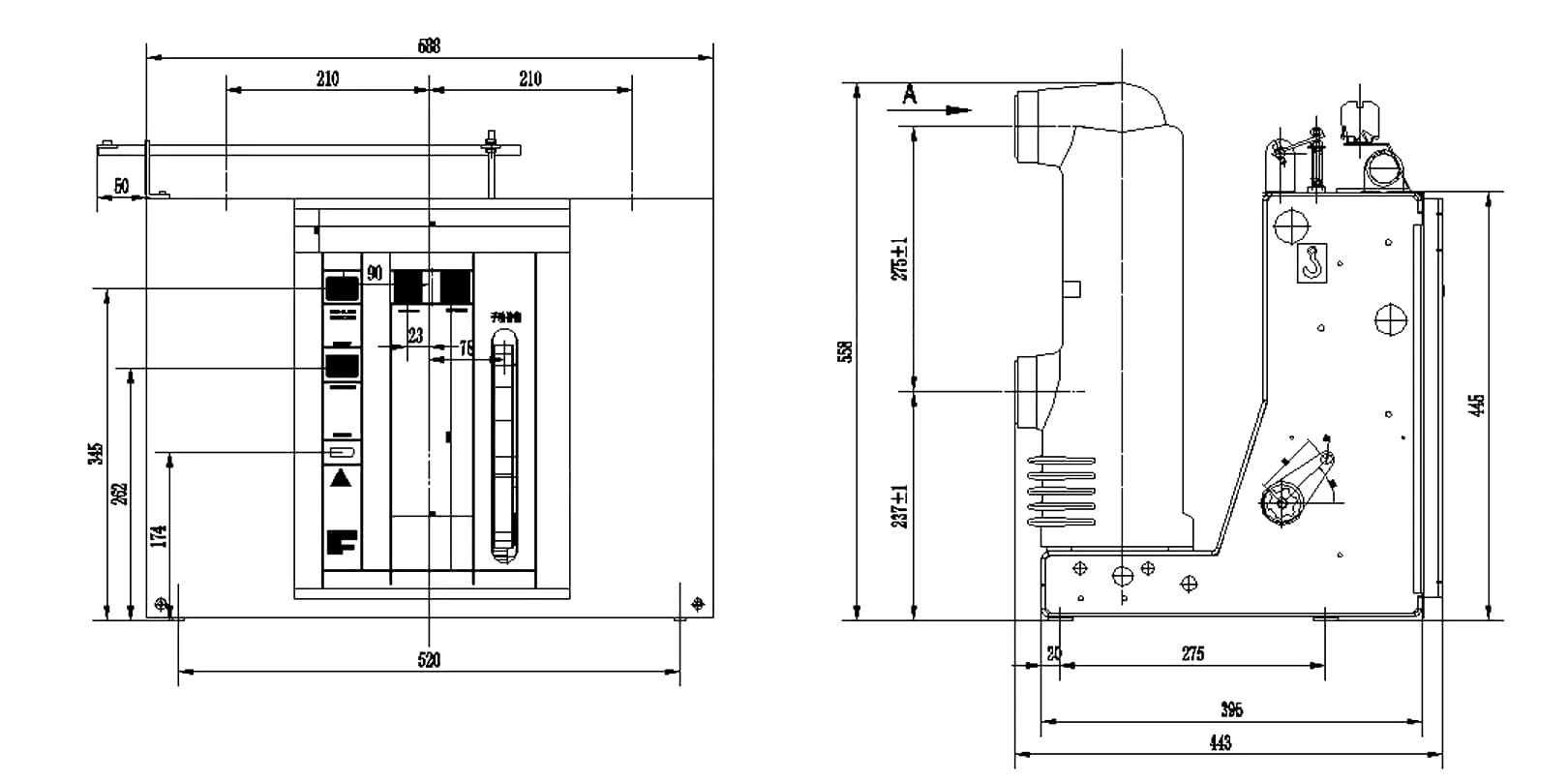 Загальні розміри VSG-12/1600 фіксованого типу VCB