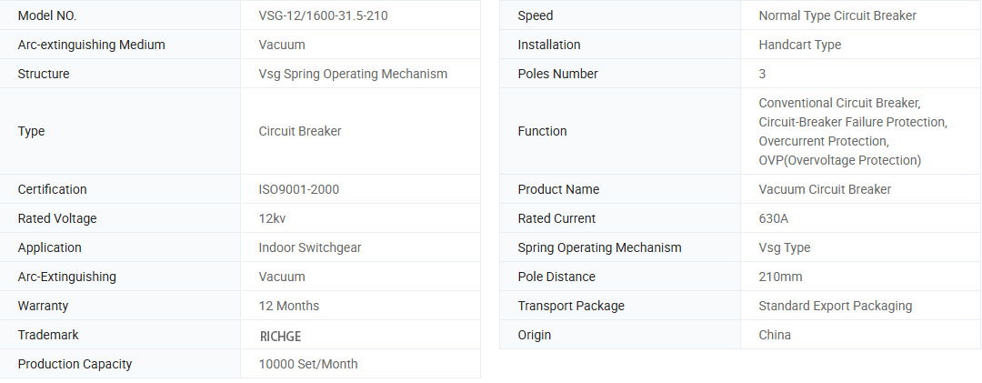 Тип VSG-12 типу в пильному вимикачі високої напруги в приміщенні використовується пружиною для енергії для зберігання. Ефективне механізм експлуатації може експлуатуватися двома способами за допомогою ручної та електроруживної роботи, характеристики-згідно з вимикачем змінного струму GB1984-2003 3,6-4,5 кВ.