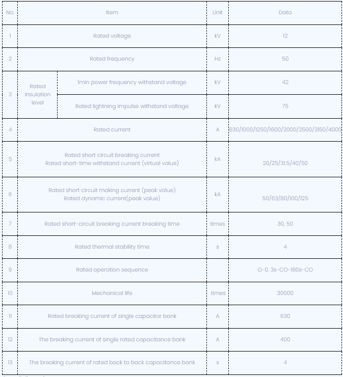 Технічні параметри VSG-12 2000A вакуумного вимикача