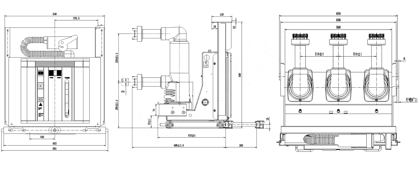 Розміри VSG-12/2000A Handcart типу вакуумного вимикача з фіксованим полюсом