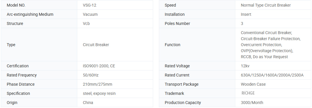 Тип VSG-12 типу в пильному вимикачі високої напруги в приміщенні використовується пружиною для енергії для зберігання. Ефективне механізм експлуатації може експлуатуватися двома способами за допомогою ручної та електроруживної роботи, характеристики-згідно з вимикачем змінного струму GB1984-2003 3,6-4,5 кВ.