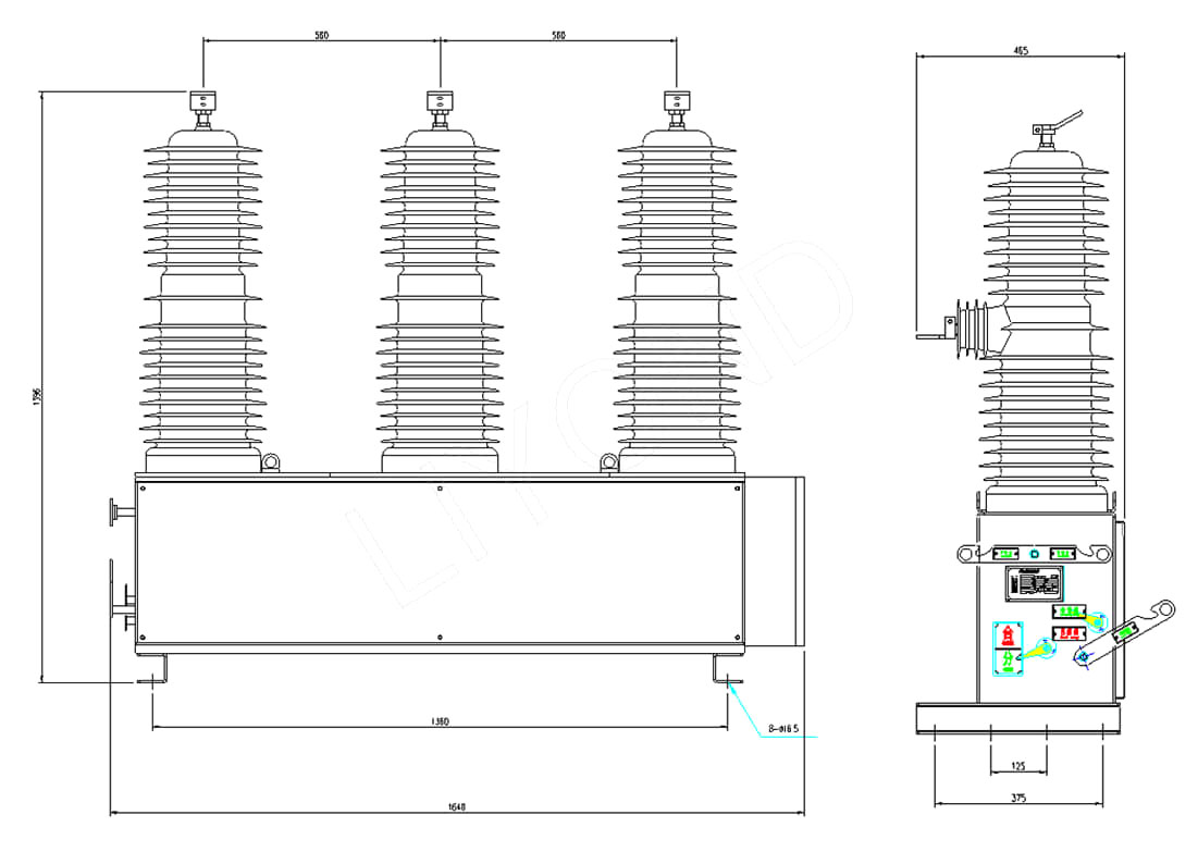 Серія ZW32-40.5 на відкритому повітрі з високою напругою вакуумних вимикачів використовується у трифазних системах живлення з змінним струмом 50 Гц та номінальною напругою 35 кВ, як засобу розділення та комбінування струму навантаження, струму перевантаження та струму короткого замикання. Переривник для вимикача може бути оснащений контролером для повторного переробки для виявлення поточних характеристик та досягнення декількох автоматичних повторних повторних, самозайнятого PT як джерела живлення, щоб стати інтелектуальним вимикачем з напругою та вихідним сигналом, і може бути контрольований; Електронним ПТ для забезпечення живлення та може завершити затримку заростання, затримку струму, короткий замикання триступеневого композитного захисту.
